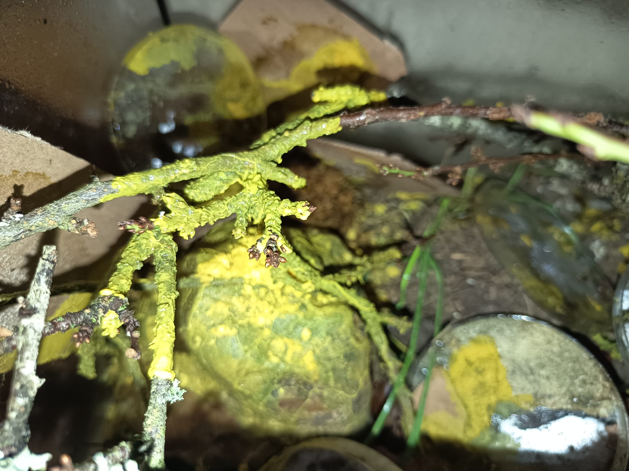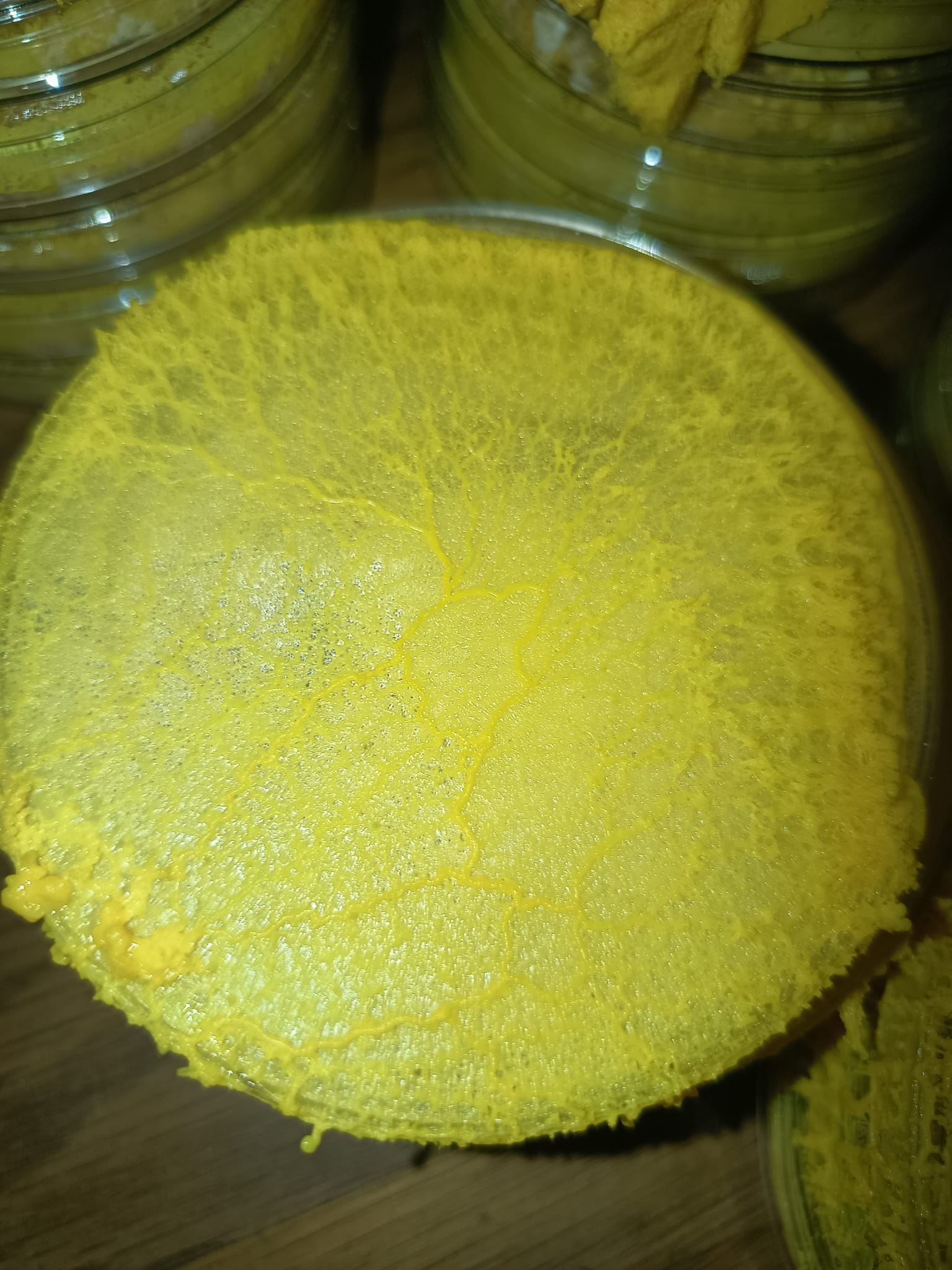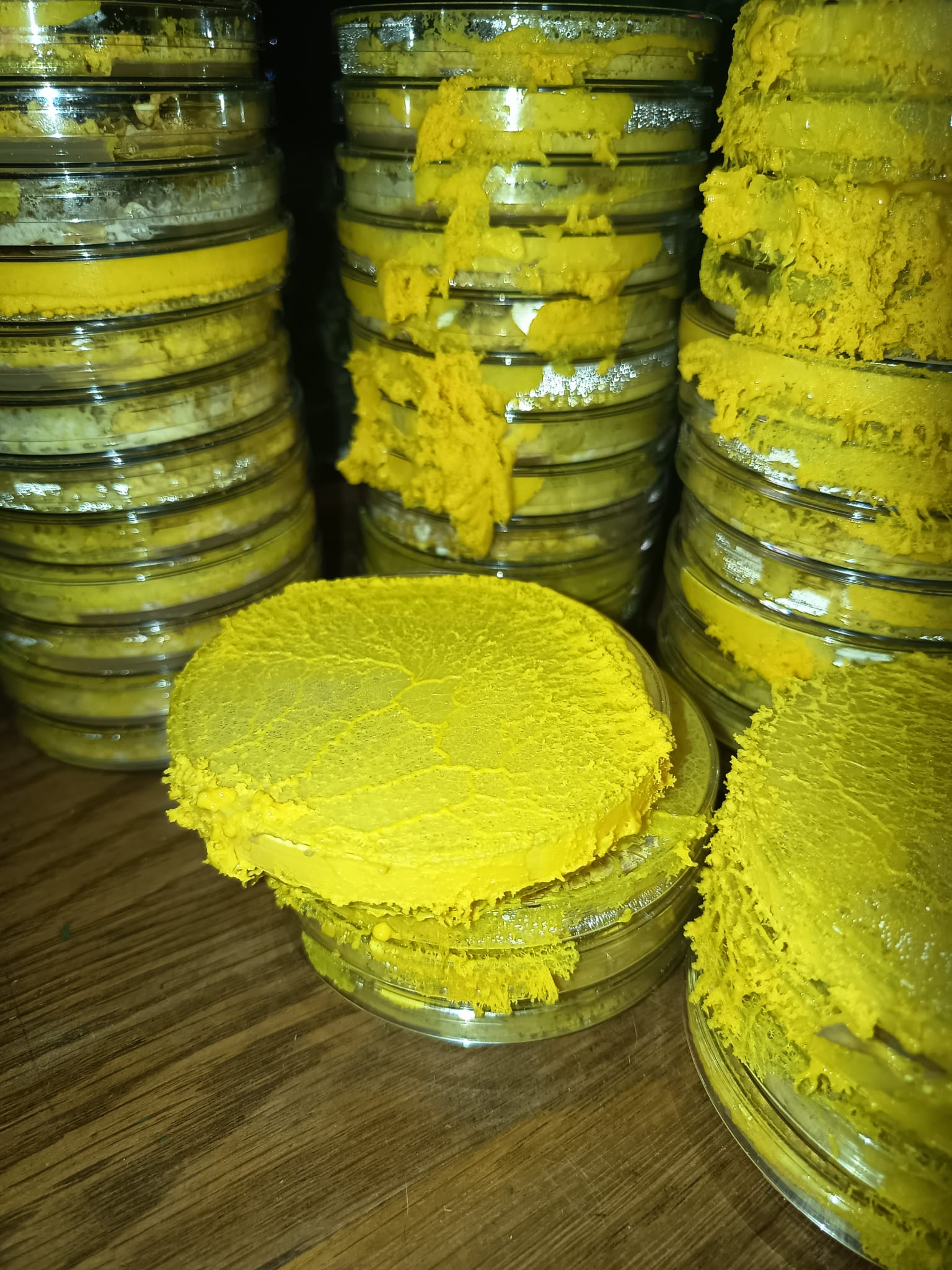 Boo B3, un Badhamia utricularis (B3) a été cultivé/élevé en même temps, dans 36 boîtes de pétri et 1 boîte de 80x40cm.