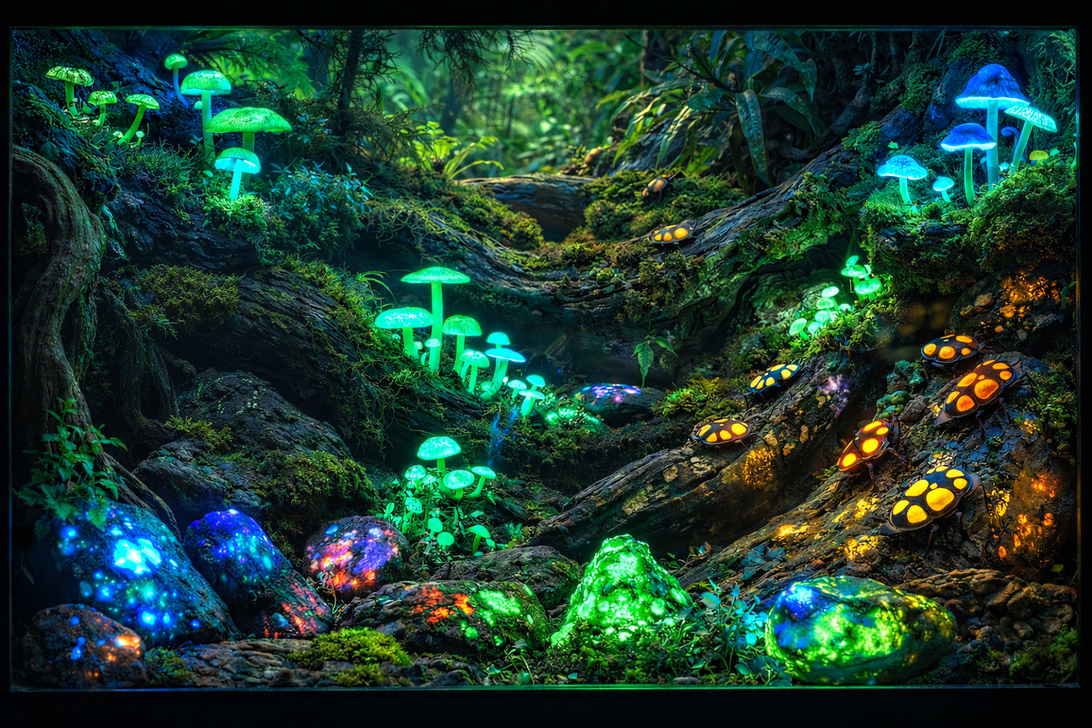C' est un langage ancien du vivant. Dans les profondeurs, les forêts humides et la nuit totale, certaines formes de vie ont appris à produire leur propre lumière: pour communiquer, se protéger, attirer, survivre. Une lumière froide, douce, sans chaleur ni combustion, née uniquement de réactions naturelles.